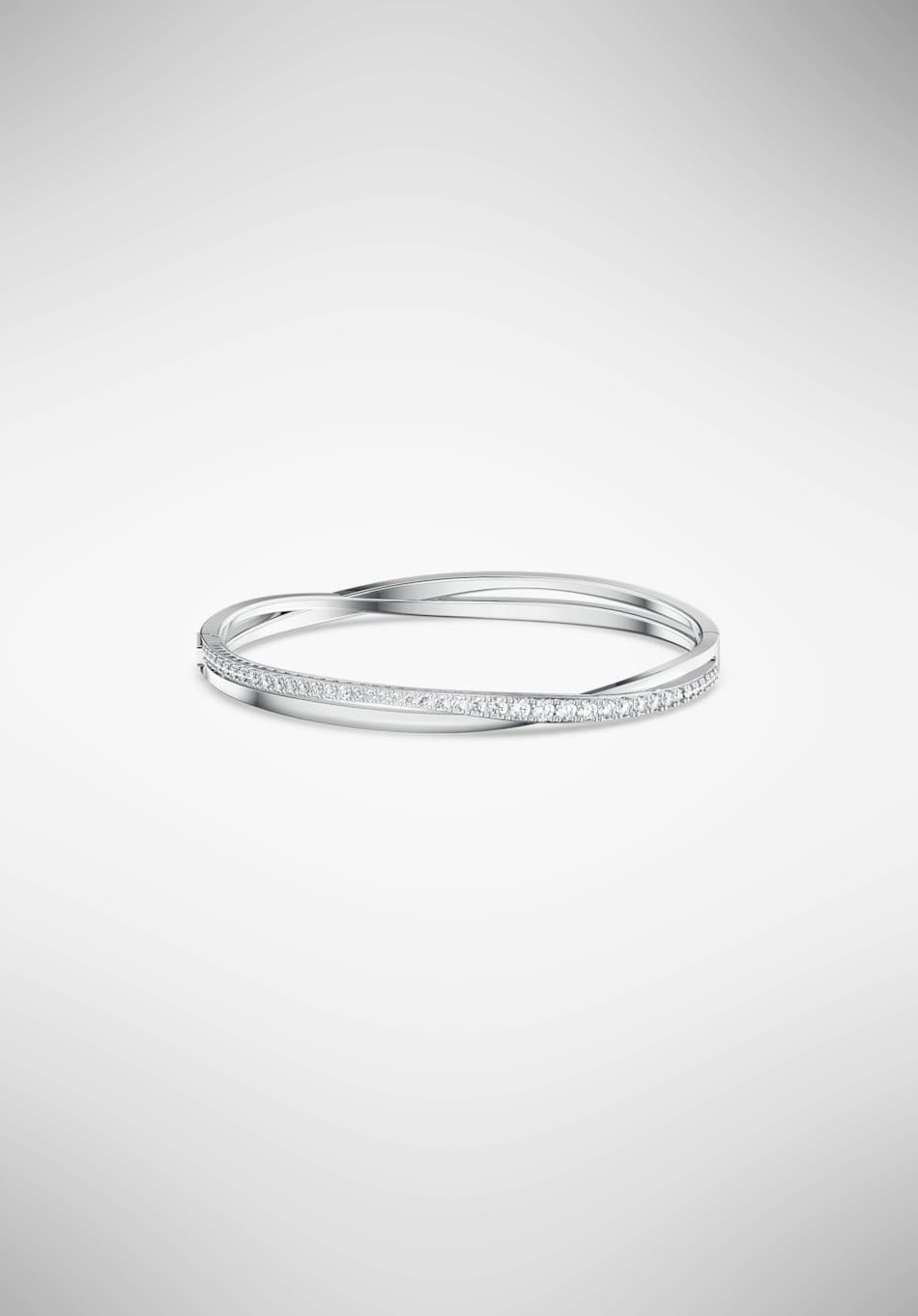 This splendid Swarovski bangle flaunts timeless and discreet elegance in a modern interpretation of the spiral trend. A brilliant line of sparkling white stones follows the delicate curved profile of the bangle, adding radiance to the design