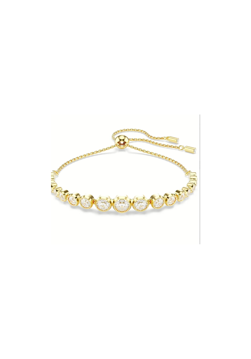 Swarovski bracelet, with crystals, with a gold tone finish, white color. Length (minimum - maximum): 16.1 - 19.9 cm. Width: 0.6cm.