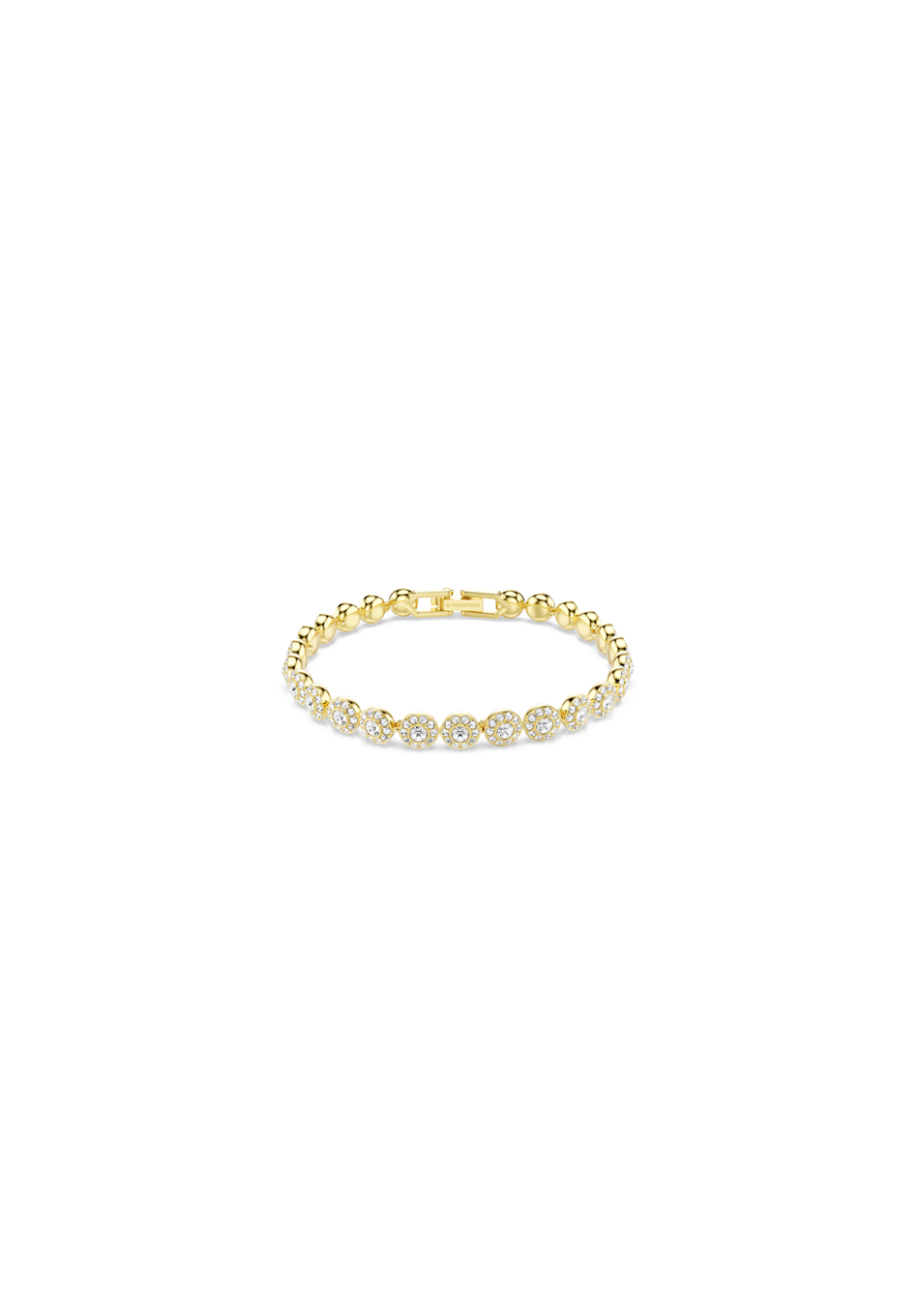 Swarovski rigid bracelet, with white Zirconia rhodium plating. Length (minimum - maximum): 17 - 17.3 cm Decoration size: 0.7 x 1.5 cm.