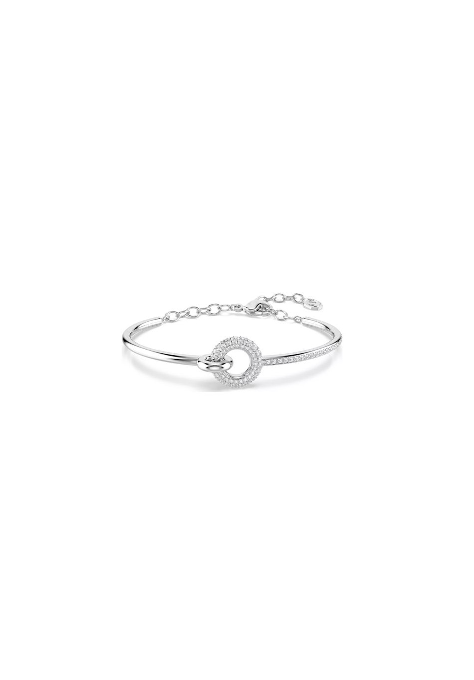 Swarovski rigid bracelet, with white Zirconia rhodium plating. Length (minimum - maximum): 17 - 17.3 cm Decoration size: 0.7 x 1.5 cm.