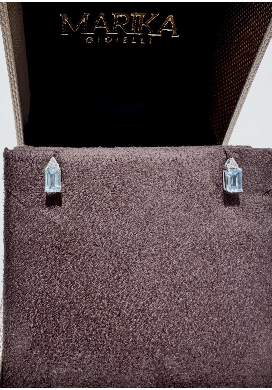 18 KT white gold earrings with brilliant cut diamonds 0.12 ct and 0.58 ct aquamarine