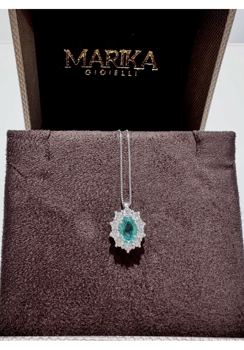 18 KT white gold necklace with brilliant cut diamonds. Central brilliant ct 0.09 G color brilliant contour 0.14 G color