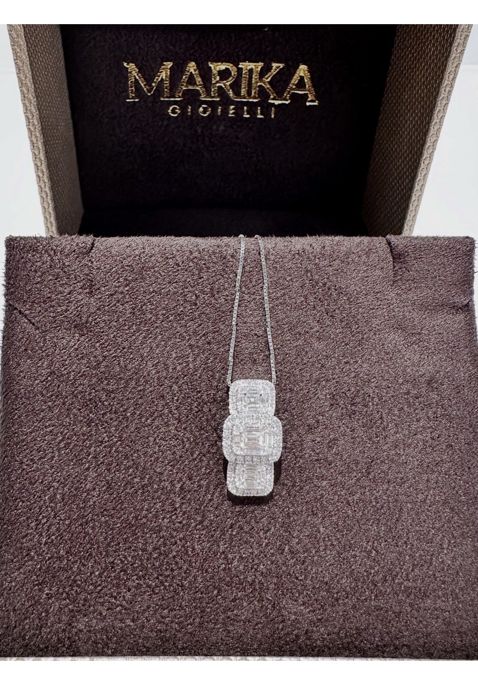 18 KT white gold necklace with brilliant cut diamonds. Central brilliant ct 0.09 G color brilliant contour 0.14 G color