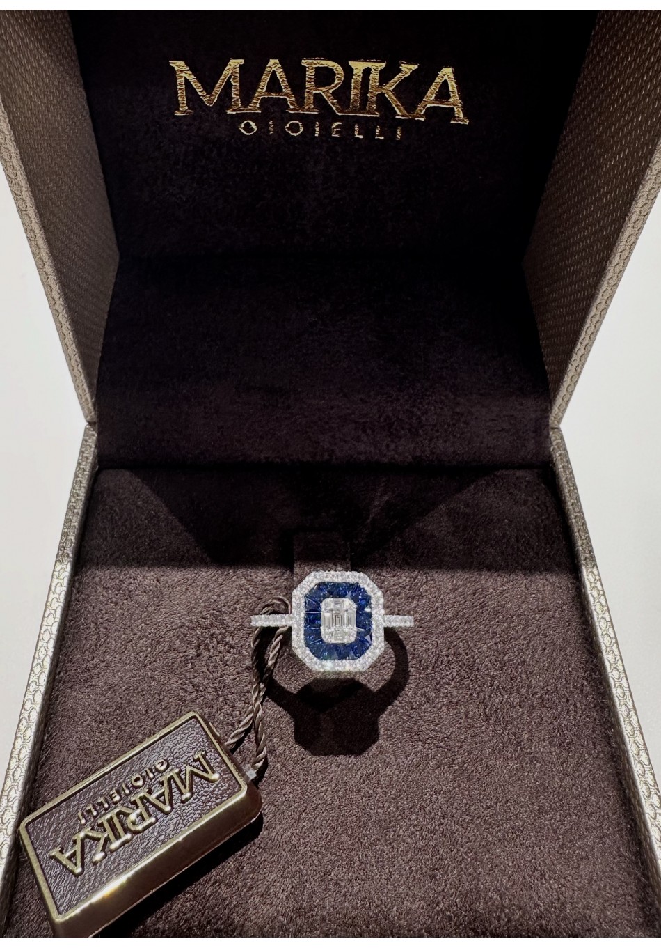 18 KT white gold ring with 0.24 ct brilliant cut diamonds and 0.76 ct sapphires