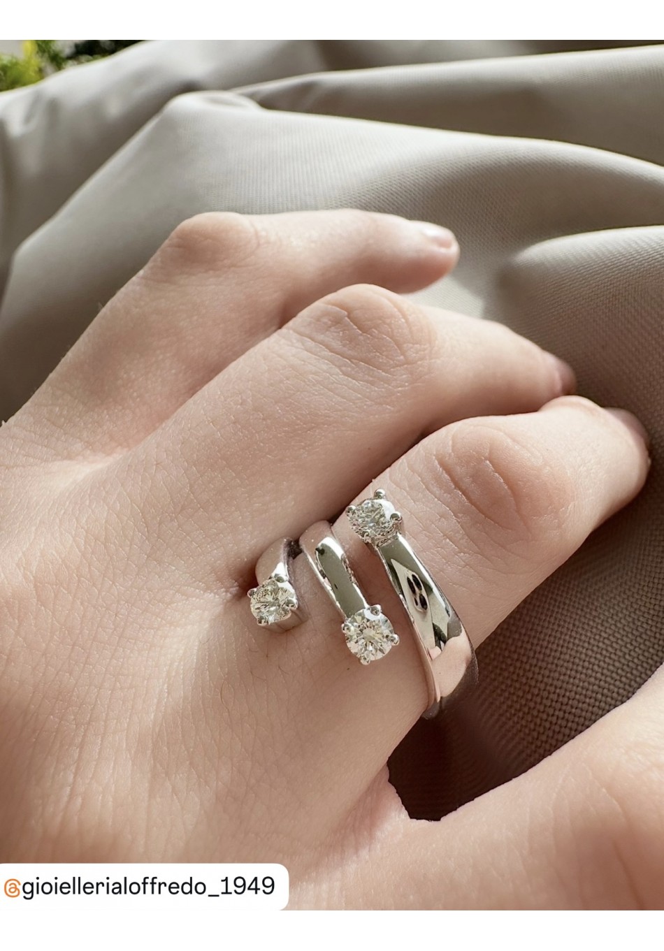 Trilogy ring in 18 Kt white gold with brilliant cut diamonds 0.60 ct F colour