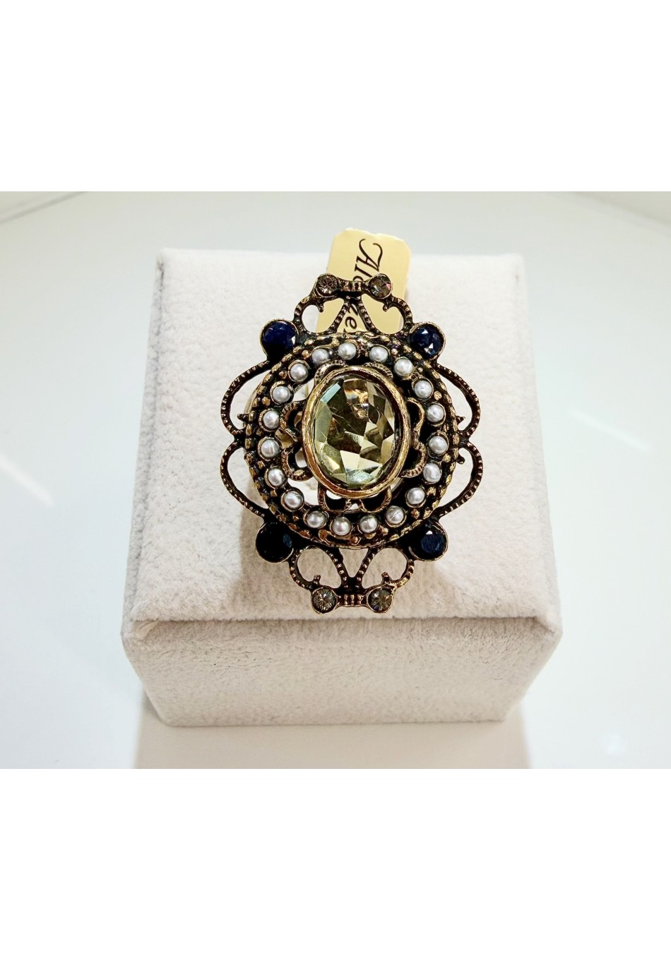 Alcozer ring "Unique" collection in gold plated brass with glowing quartz and Swarovski