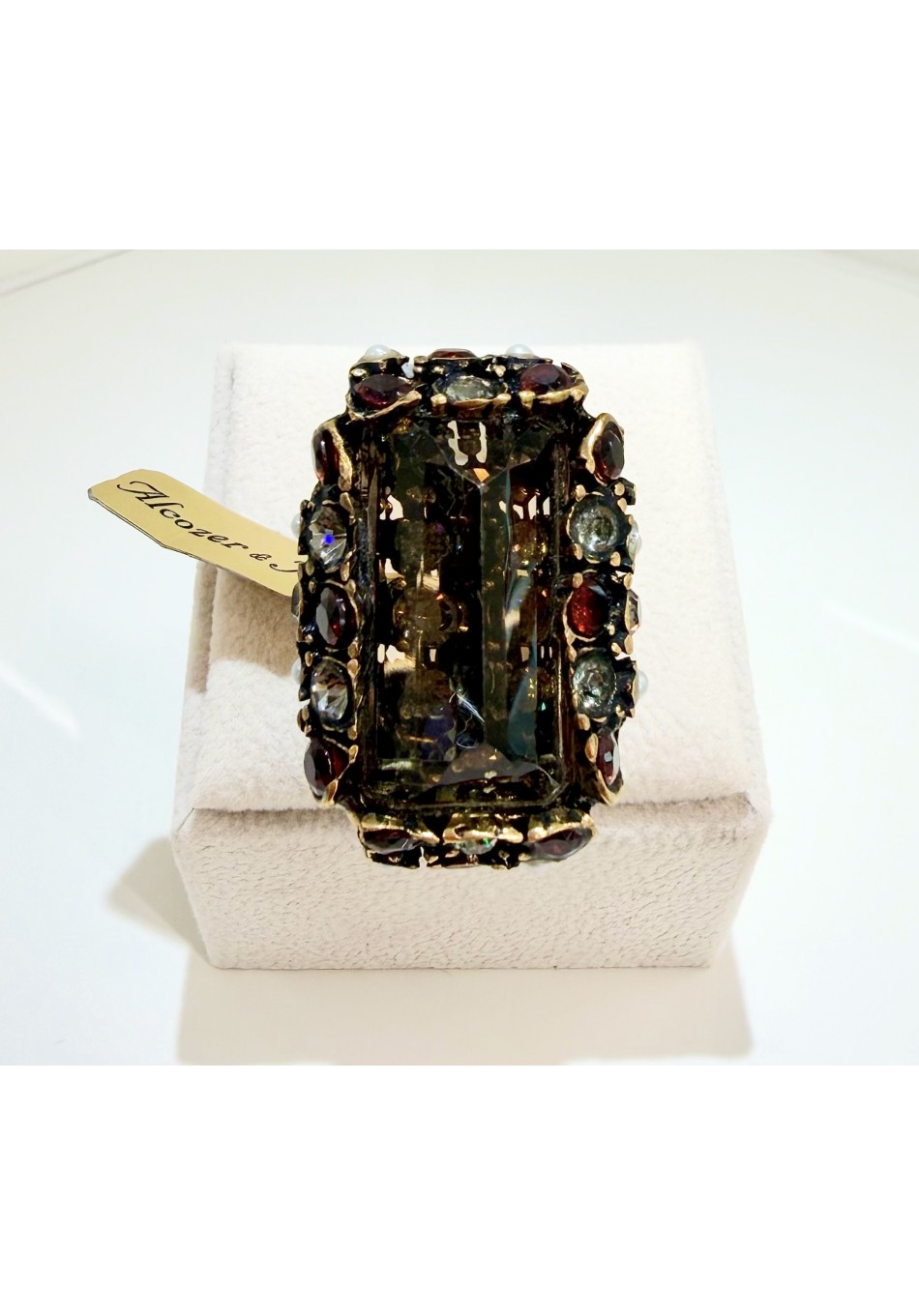 Alcozer ring "Unique" collection in gold plated brass with glowing quartz and Swarovski