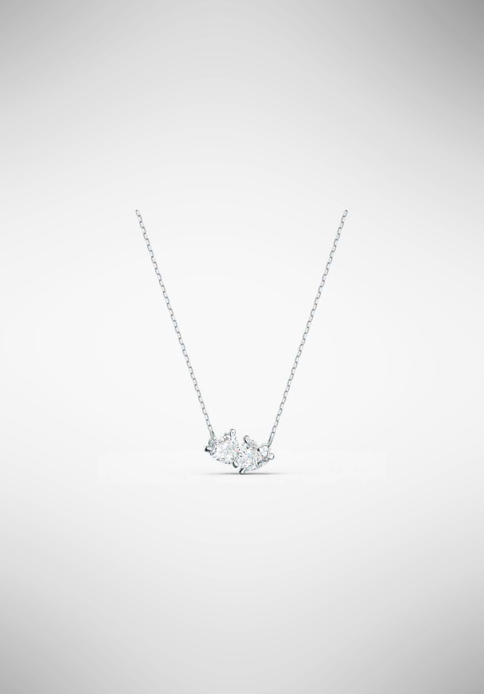 Design classico con una rivisitazione moderna: Questa collana Swarovski della nostra collezione Attract Soulmates presenta splendide pietre a forma di cuori gemelli. Scintillante cristallo bianco completa la soffusa eleganza della catenina con bead grazie a un tocco di romanticismo