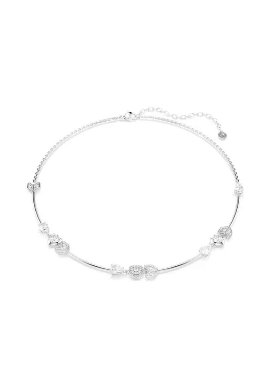 La collana Swarovski punta dritto all’amore con la sua decorazione all-around di frecce di Cupido. Tra una freccia e l’altra è stato incastonato un brillante cuore, con diverse espressioni che vanno dal metallizzato allo chatonnage integrale. L’intero design è un’elegante combinazione di placcatura rodio e cristalli Cry