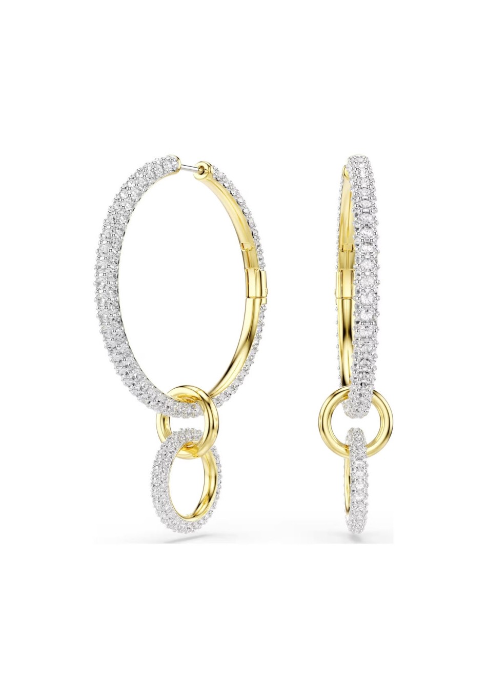 Questi orecchini stile industrial-chic sono pensati per un look d'effetto. Sfoggiando la nostra iconica tecnica pavé, ciascuno degli anelli circolari placcati rodio è impreziosito da scintillanti cristalli Cry all-over.