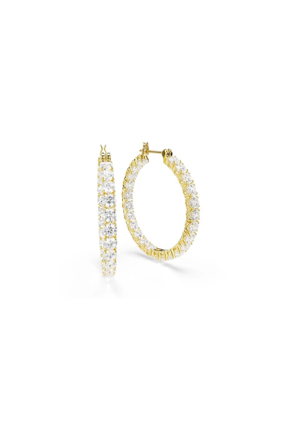 Gli orecchini a cerchio Matrix dalla forma perfetta sono definiti dal look intramontabile dei cristalli taglio Round e dal metallo placcato in tonalità oro. È una combinazione sublime, essenziale per qualsiasi portagioie. Scegli gli orecchini a cerchio quando desideri rivestirti di pura radiosità.