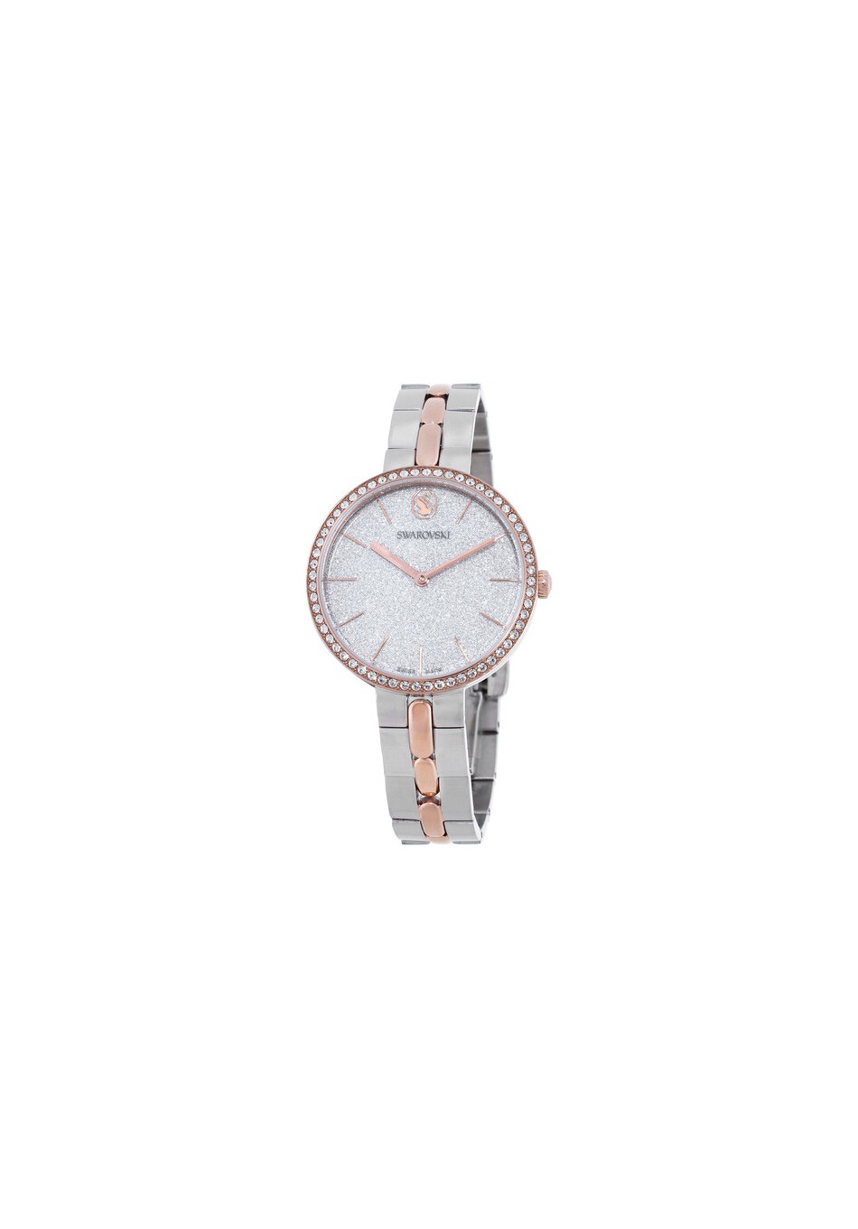 Questo orologio Swarovski della famiglia Crystalline Wonder combina ad arte forma e funzionalità. Circa 1.000 cristalli disposti sulla cassa in acciaio inossidabile creano un frizzante effetto di luminosità. Un bracciale in metallo con finitura color oro rosa e un quadrante bianco argentato