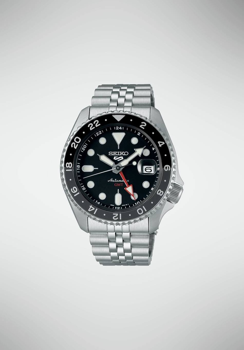 La serie Seiko 5 sport da il benvenuto ai nuovi orologi GMT SKX. L'SSK001K1 è opportunamente dotato di una lunetta girevole bicolore graduata nell'arco di 24 ore per consentire la lettura di un fuso orario aggiuntivo distinguendo giorno e notte.
